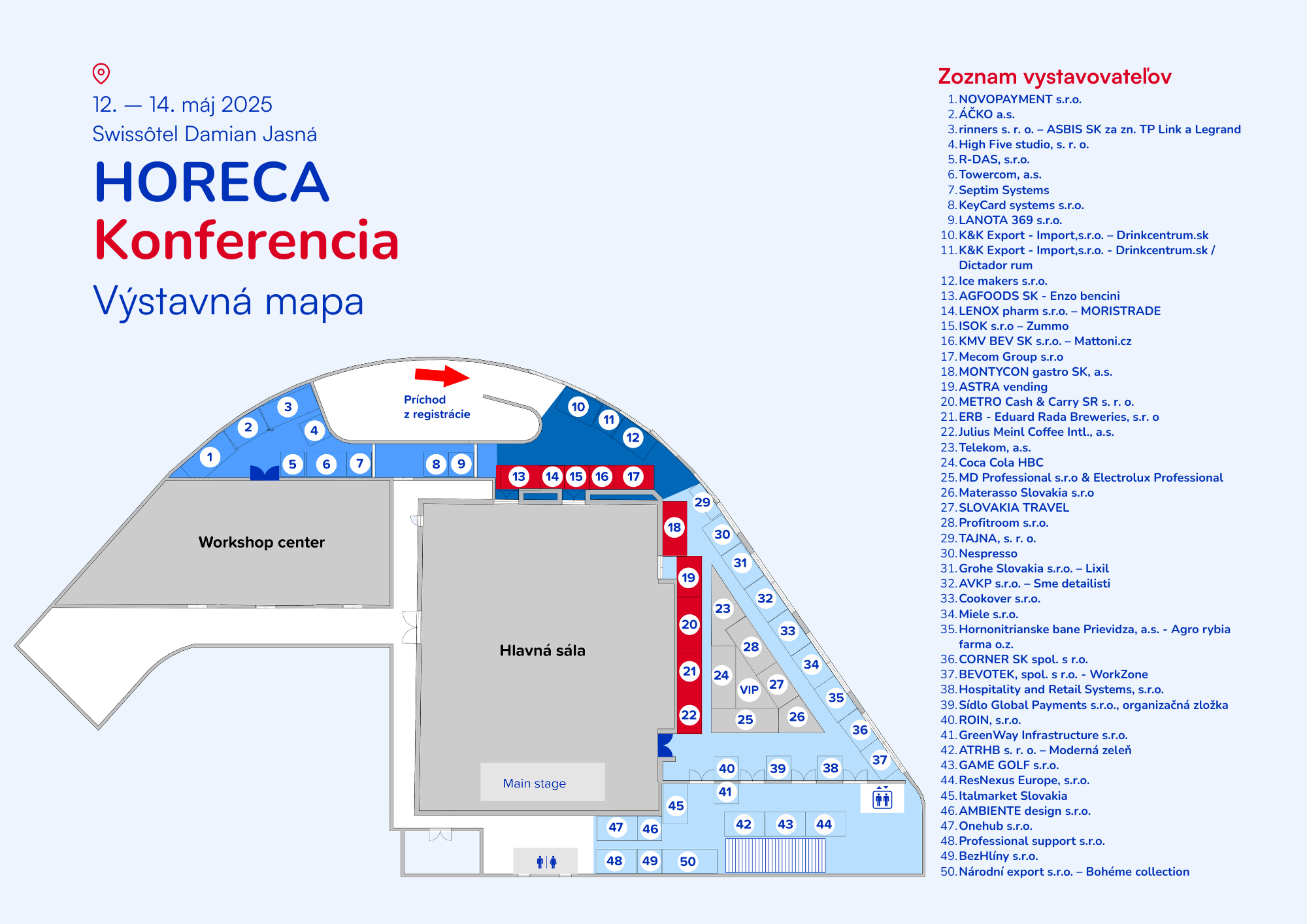 Umiestnenie výstavného miesta určuje organizátor podľa princípu first come, first serve. Presnú polohu vášho stánku vám oznámime pred podujatím v pokynoch pre vystavovateľov. Na mieste budú všetky stánky viditeľne označené.